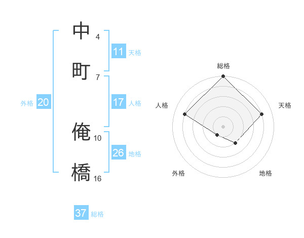 中町 俺橋さんを姓名の画数から五運を鑑定