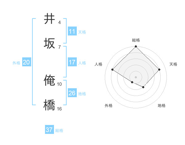 井坂 俺橋さんの地格は26画の2点!