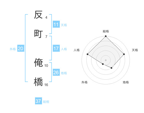 反町 俺橋さんの総格は37画の5点!