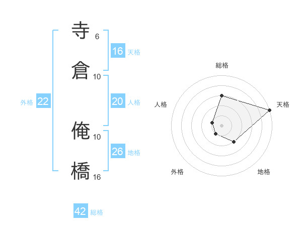 寺倉 俺橋さんの天格は16画の5点!