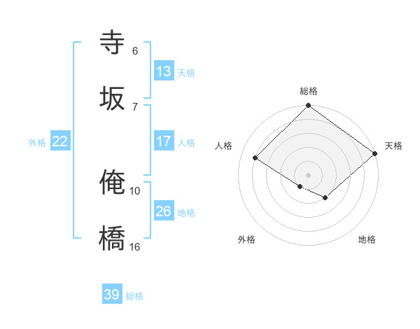 寺坂 俺橋さんを姓名の画数から五運を鑑定