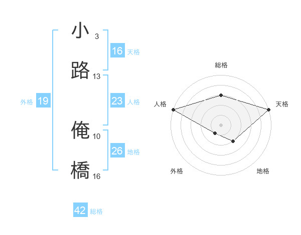 小路 俺橋さんの天格は16画の5点!