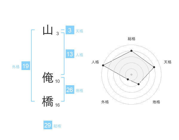 山 俺橋さんの総格は29画の4点!