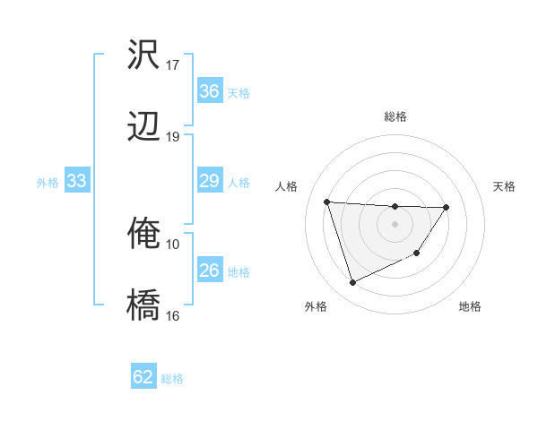 沢辺 俺橋さんを姓名の画数から五運を鑑定