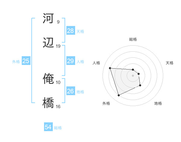 河辺 俺橋さんを姓名の画数から五運を鑑定