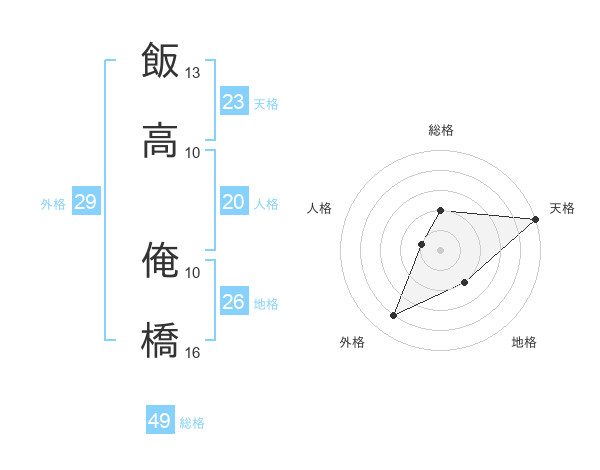 飯高 俺橋さんの総格は49画の2点!