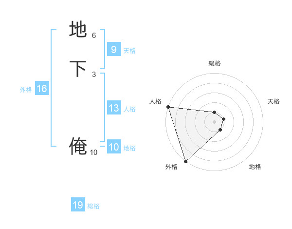 地下 俺さんの総格は19画の1点!