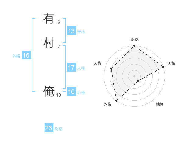 有村 俺さんの総格は23画の5点!