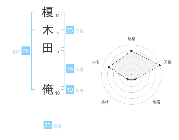 榎木田 俺さんを姓名の画数から五運を鑑定