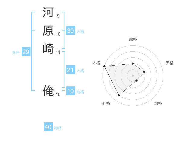 河原崎 俺さんの総格は40画の2点!