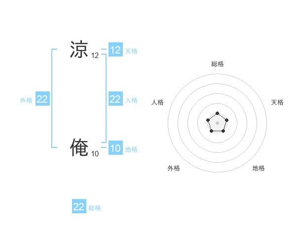 涼 俺さんの総格は22画の1点!