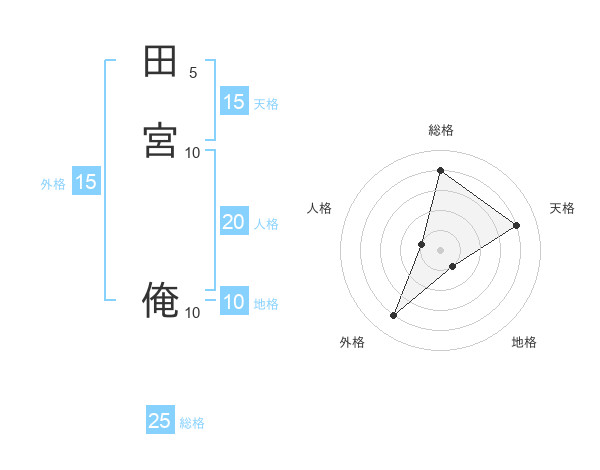 田宮 俺さんの総格は25画の4点!