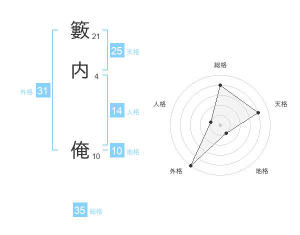 籔内 俺さんの天格は25画の4点!