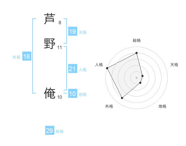 芦野 俺さんの総格は29画の4点!