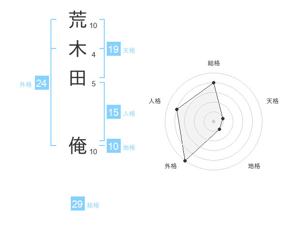 荒木田 俺さんを姓名の画数から五運を鑑定