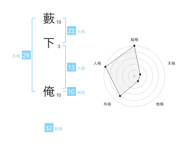 藪下 俺さんの天格は22画の1点!