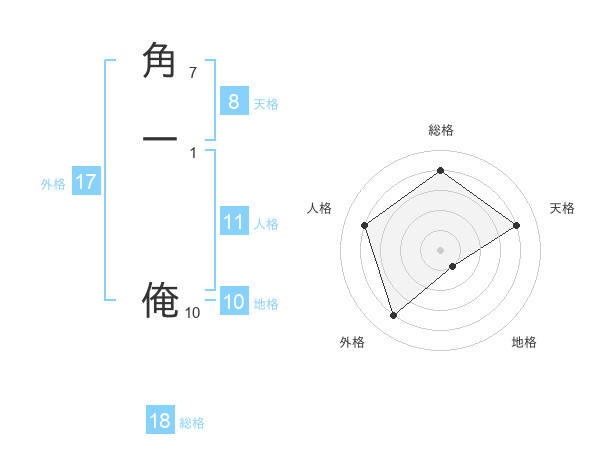 角一 俺さんの総格は18画の4点!