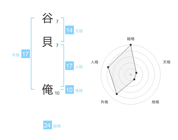 谷貝 俺さんの総格は24画の5点!