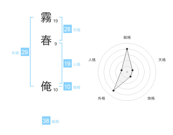 霧春 俺さんの総格は38画の4点!