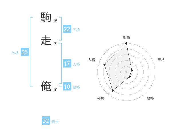 駒走 俺さんの総格は32画の5点!
