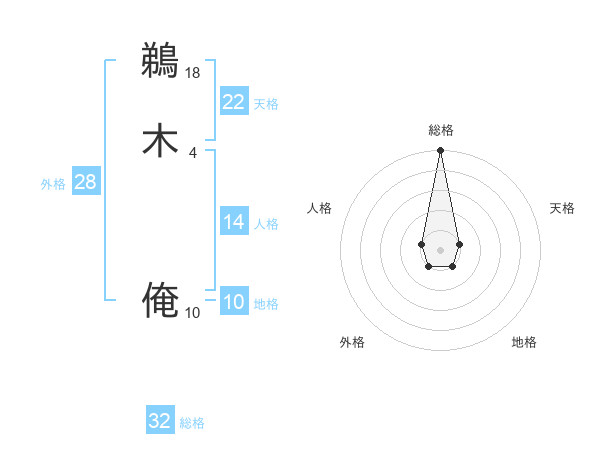鵜木 俺さんを姓名の画数から五運を鑑定