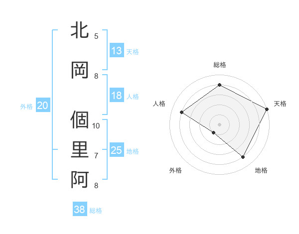 北岡 個里阿さんを姓名の画数から五運を鑑定