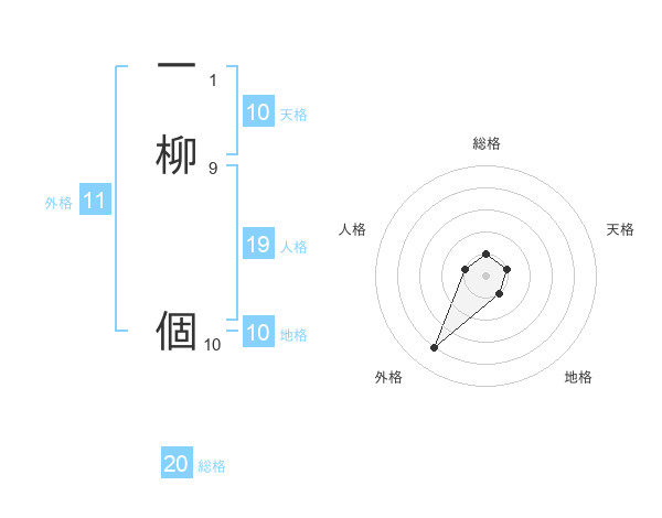 一柳 個さんの総格は20画の1点!