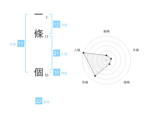 一條 個さんの総格は22画の1点!