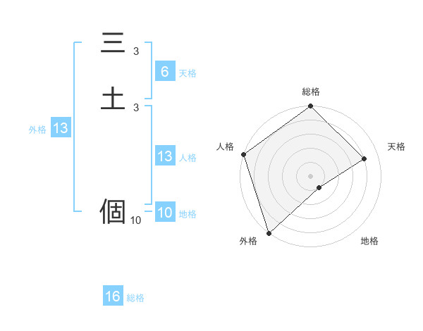 三土 個さんの人格は13画の5点!