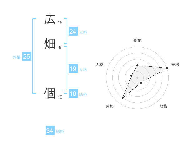 広畑 個さんの総格は34画の2点!
