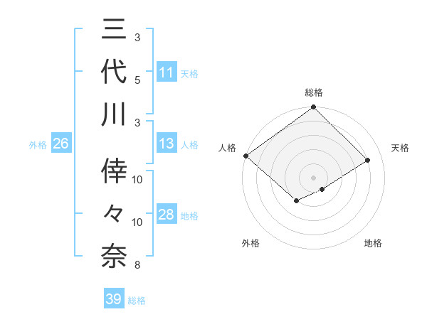 三代川 倖々奈さんを姓名の画数から五運を鑑定