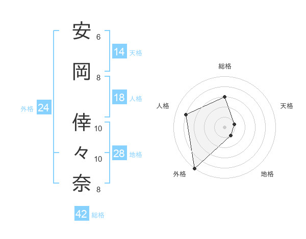 安岡 倖々奈さんの外格は24画の5点!