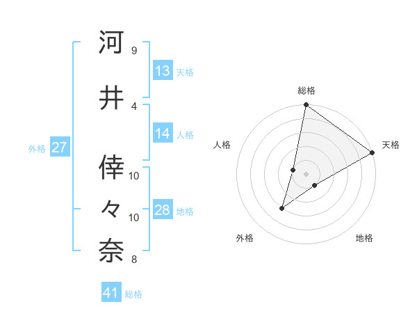 河井 倖々奈さんの天格は13画の5点!
