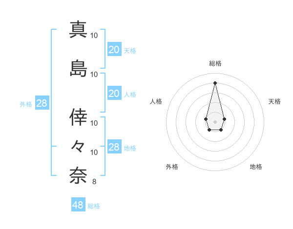 真島 倖々奈さんを姓名の画数から五運を鑑定