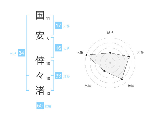 国安 倖々渚さんを姓名の画数から五運を鑑定