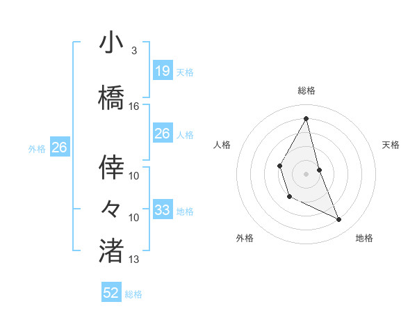 小橋 倖々渚さんの総格は52画の4点!