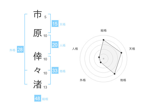 市原 倖々渚さんを姓名の画数から五運を鑑定