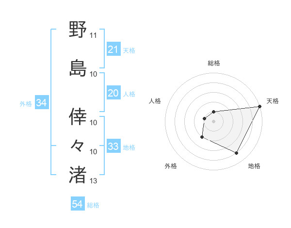 野島 倖々渚さんを姓名の画数から五運を鑑定