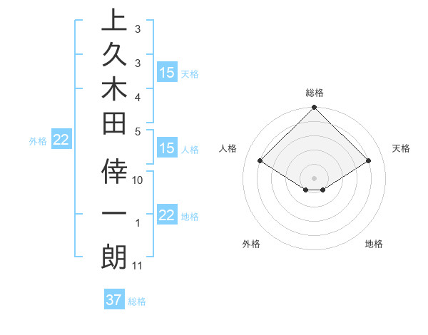 上久木田 倖一朗さんの総格は37画の5点!