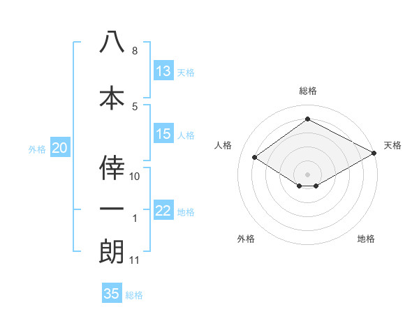八本 倖一朗さんの天格は13画の5点!