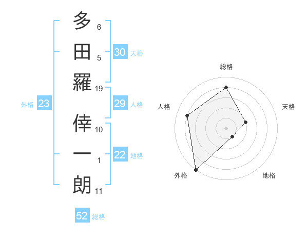 多田羅 倖一朗さんを姓名の画数から五運を鑑定