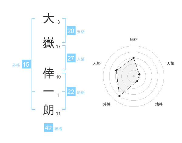 大嶽 倖一朗さんの地格は22画の1点!