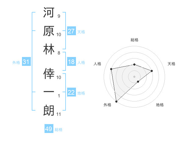 河原林 倖一朗さんを姓名の画数から五運を鑑定