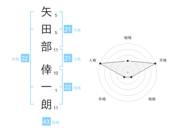 矢田部 倖一朗さんを姓名の画数から五運を鑑定
