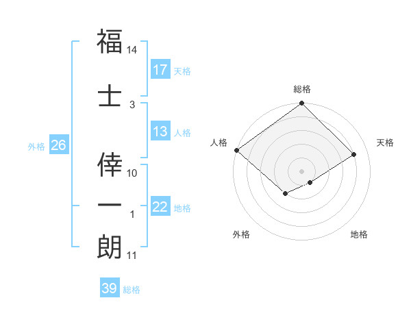 福士 倖一朗さんを姓名の画数から五運を鑑定
