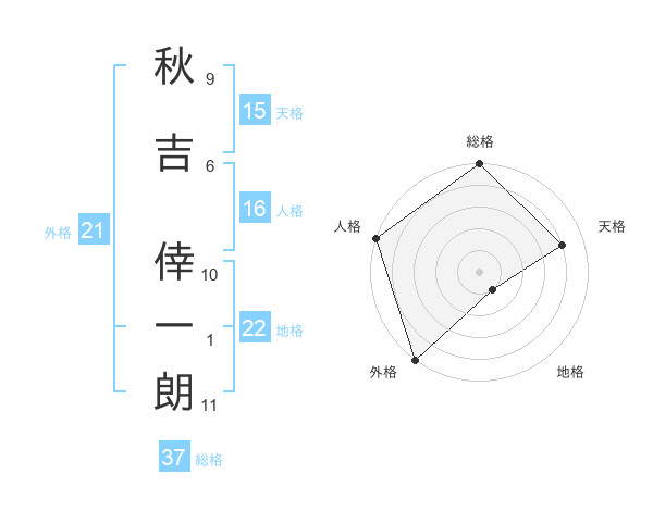 秋吉 倖一朗さんを姓名の画数から五運を鑑定