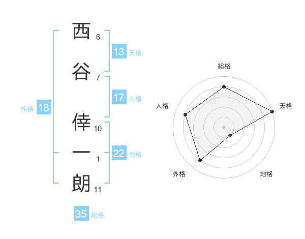 西谷 倖一朗さんを姓名の画数から五運を鑑定