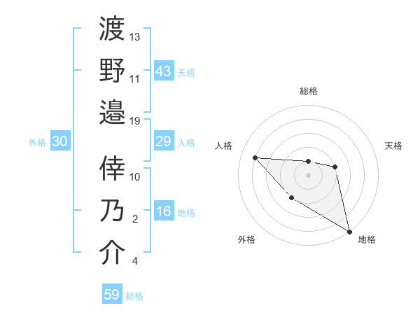 渡野邉 倖乃介さんを姓名の画数から五運を鑑定