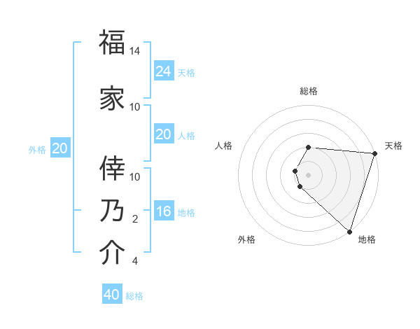 福家 倖乃介さんを姓名の画数から五運を鑑定