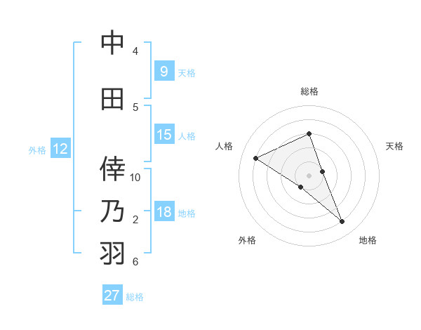 中田 倖乃羽さんの総格は27画の3点!